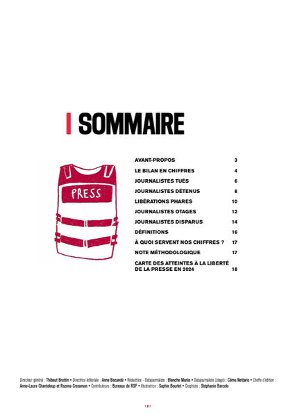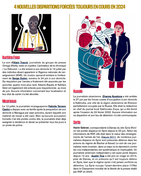 20 illustrations pour le Bilan de Reporters Sans Frontières 2024